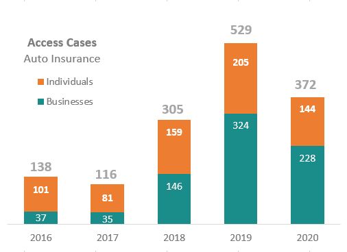 However, over the past three years, there has been a noticeable trend: access requests from businesses have risen and even surpassed those from individuals. In fact, businesses represented more than 60% of the requests in 2019 and 2020.